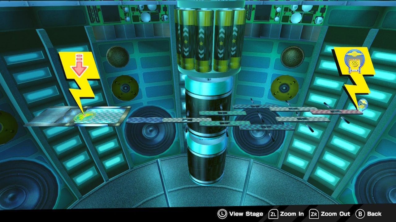 This stage consists of, as the title implies, eight seesaws. The key hard part of the stage is that the seesaws are placed in a diamond-like configuration, with each higher than the previous. The goal is on the last seesaw. The starting platform leads straight to a stationary platform, adjoining to the first seesaw. The goal is on the farthest back seesaw.