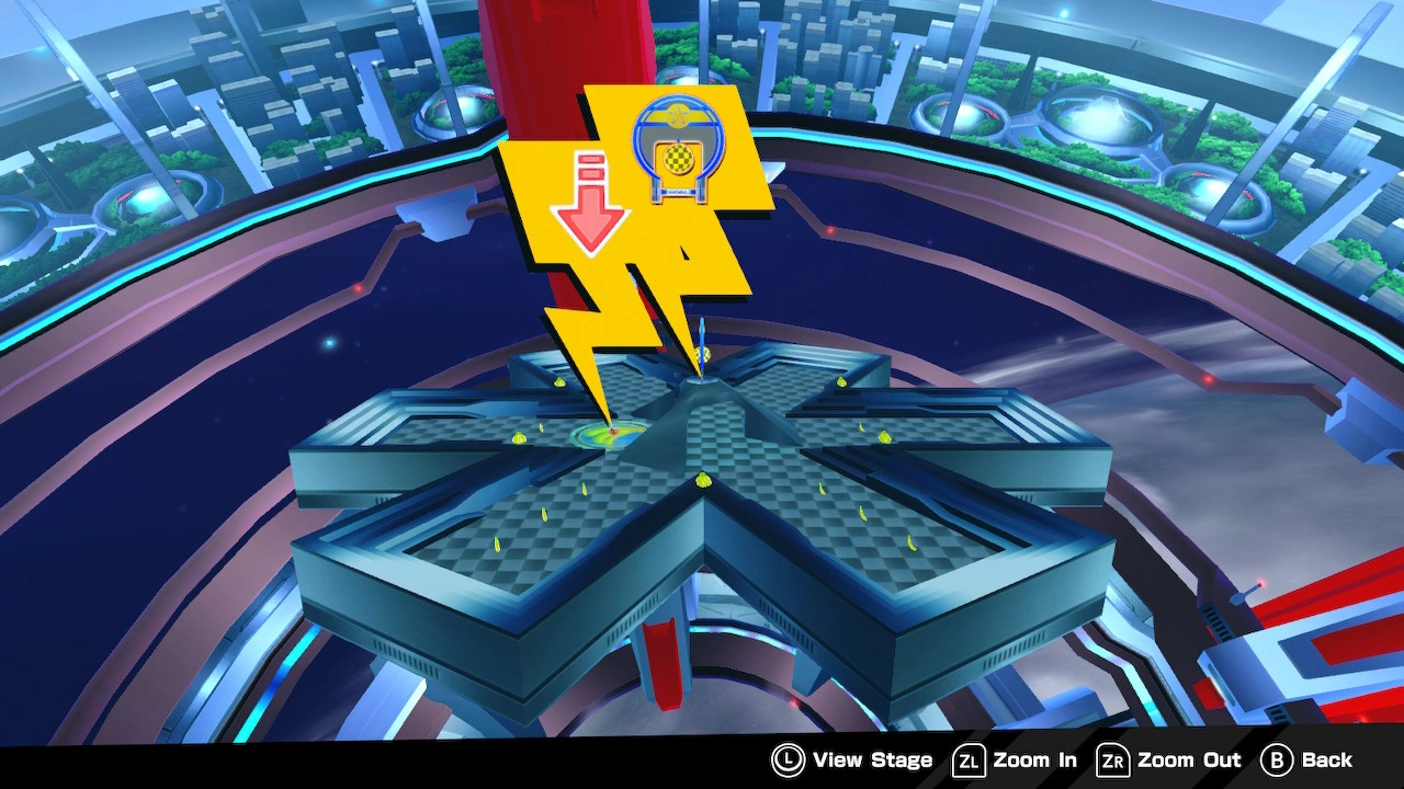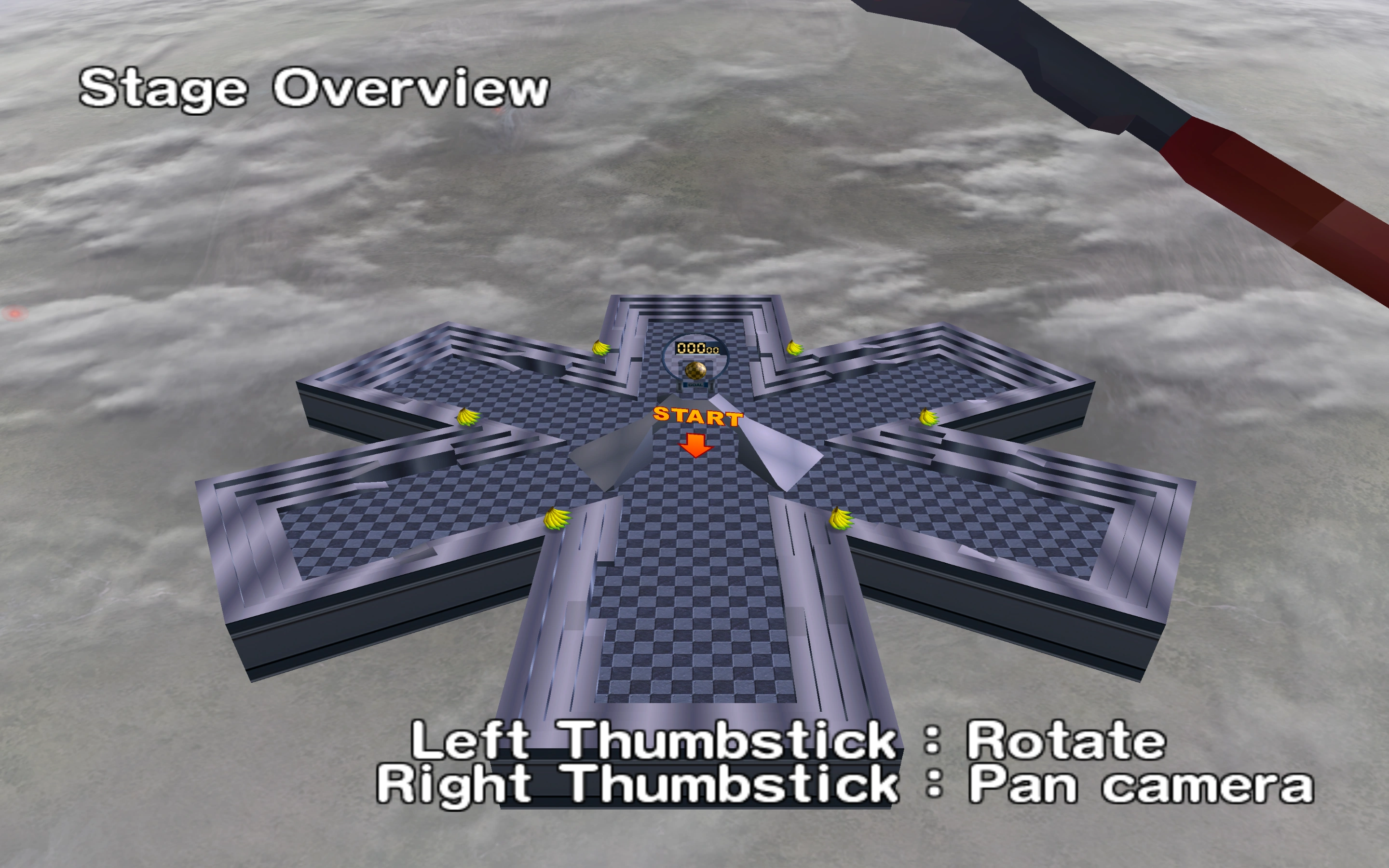 This stage is shaped like a huge asterisk mark. Surrounding the borders are many layers which the monkey can use to navigate to get bananas and to increase his or her speed to roll up one of the asterisk's ramps into the goal.