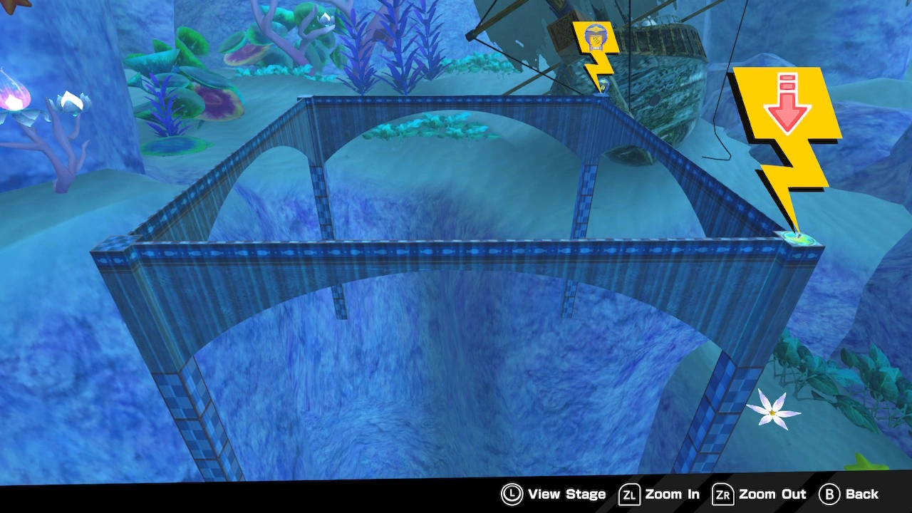 The paths have been made slightly wider, reducing the difficulty of the stage. Conversely, there are no invisible ledges, increasing the difficulty of the stage.