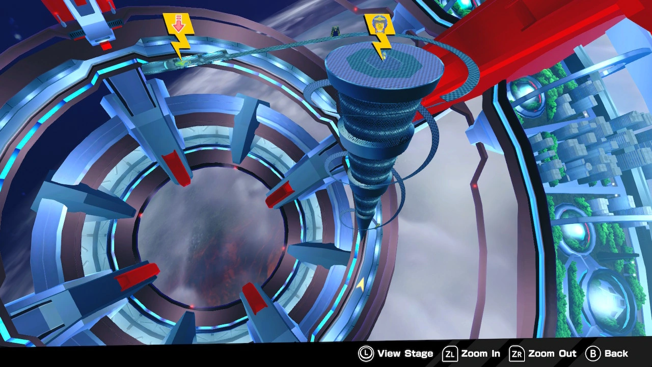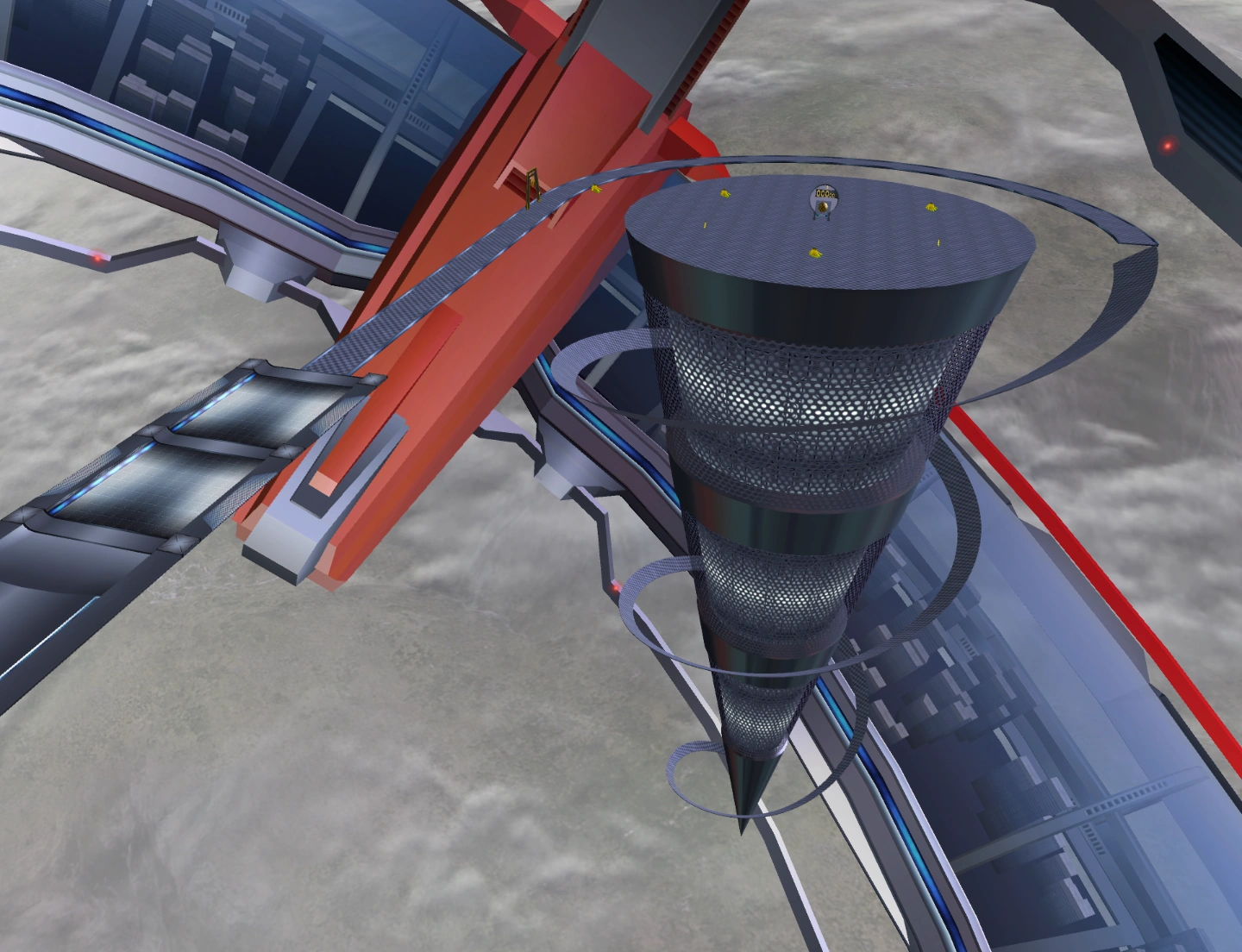 This stage features a massive cone structure with a slider spiraling around it. There is a wormhole at the end of the slider that will allow you to launch to the top of the cone. The goal is placed on the middle of the cone.