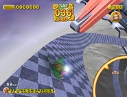 Conical Slider is the 8th Expert Extra stage of Super Monkey Ball 2, Super Monkey Ball Deluxe, and Super Monkey Ball Banana Mania, the 258th Ultimate stage without continues, and the 118th Marathon stage of Super Monkey Ball 2 in Super Monkey Ball Banana Mania.