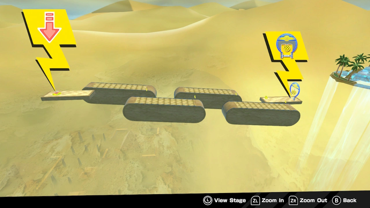 Move onto the first conveyor belt whenever it gets close. Next, move onto the next belt when it meets the conveyor belt you are on. Then, repeat this process twice and you will reach the goal. Make sure to wait and take your time. It is easier to fall out on this stage than you think.