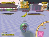The floaters may seem like a hard obstacle to bypass, but you can easily navigate to the goal by going around the holes of where the floaters come out. Just simply weave around the floaters and holes and into the goal. You have plenty of time to make it to the goal, which makes it easier to grab some banana bunches as well on the floaters at each corner of the square platform.