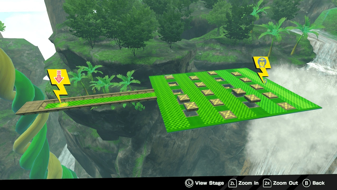 This stage directs you onto a large, square platform full of square floaters that go up and down in their own time. The goal lies at the center of the end of the stage.