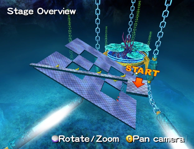 This floor is considered quite difficult. It features a large, slanted, square-shaped platform. It has a checkerboard-like pattern applied to it with square-shaped holes adjoining each other diagonally and square-shaped platforms adjoining each other diagonally. There is also a straight, narrow path with a square-shaped end that leads to the slanted platform. The goal is located at the far, upper-right corner of the platform.