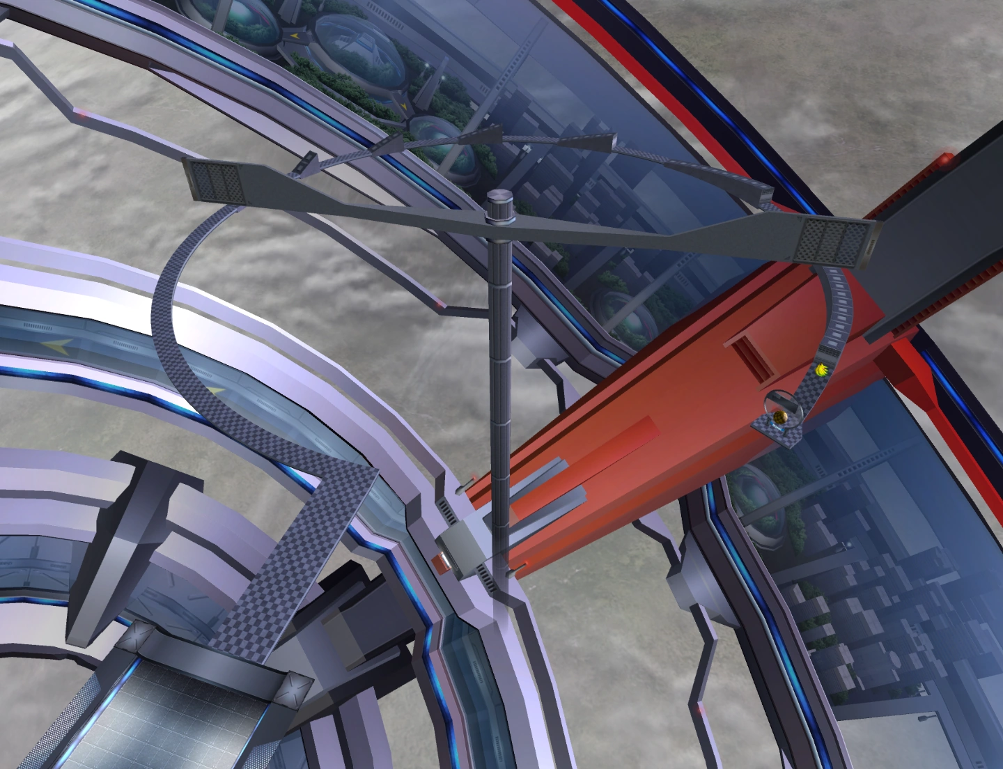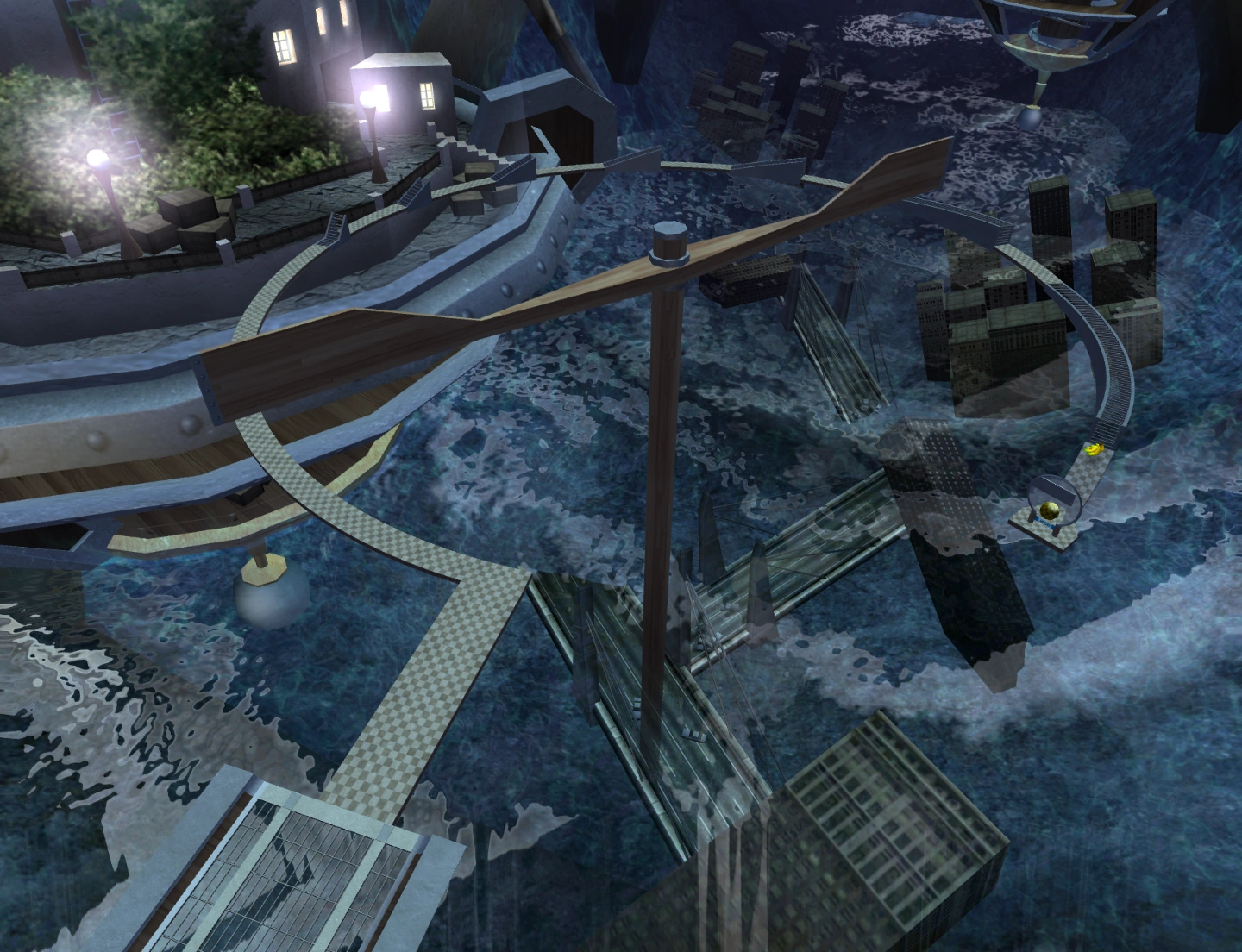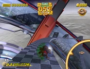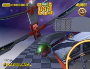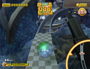 This is a level in which your monkey ball is supposed to roll up ramps that become longer and longer in a semi-circle. A spinning rod holds two platforms that wipe across the tops of the ramps. Therefore, if you don't make it over the ramp near its edge, there is a high chance that you will be knocked off the edge of the course by one of two guillotines.