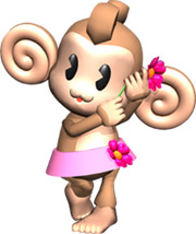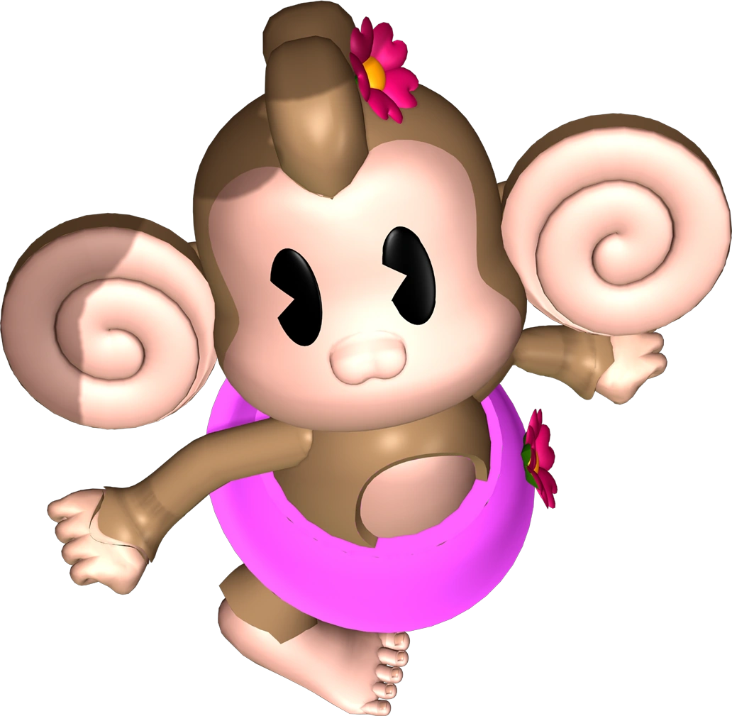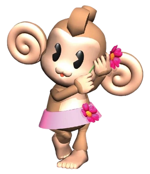 Super Monkey Ball 3D Website/In-Game: A beauty who always wears a flower in her hair, she is much more practical than AiAi. She adores AiAi but feels a little neglected by their obsessions with bananas and muscles respectively.