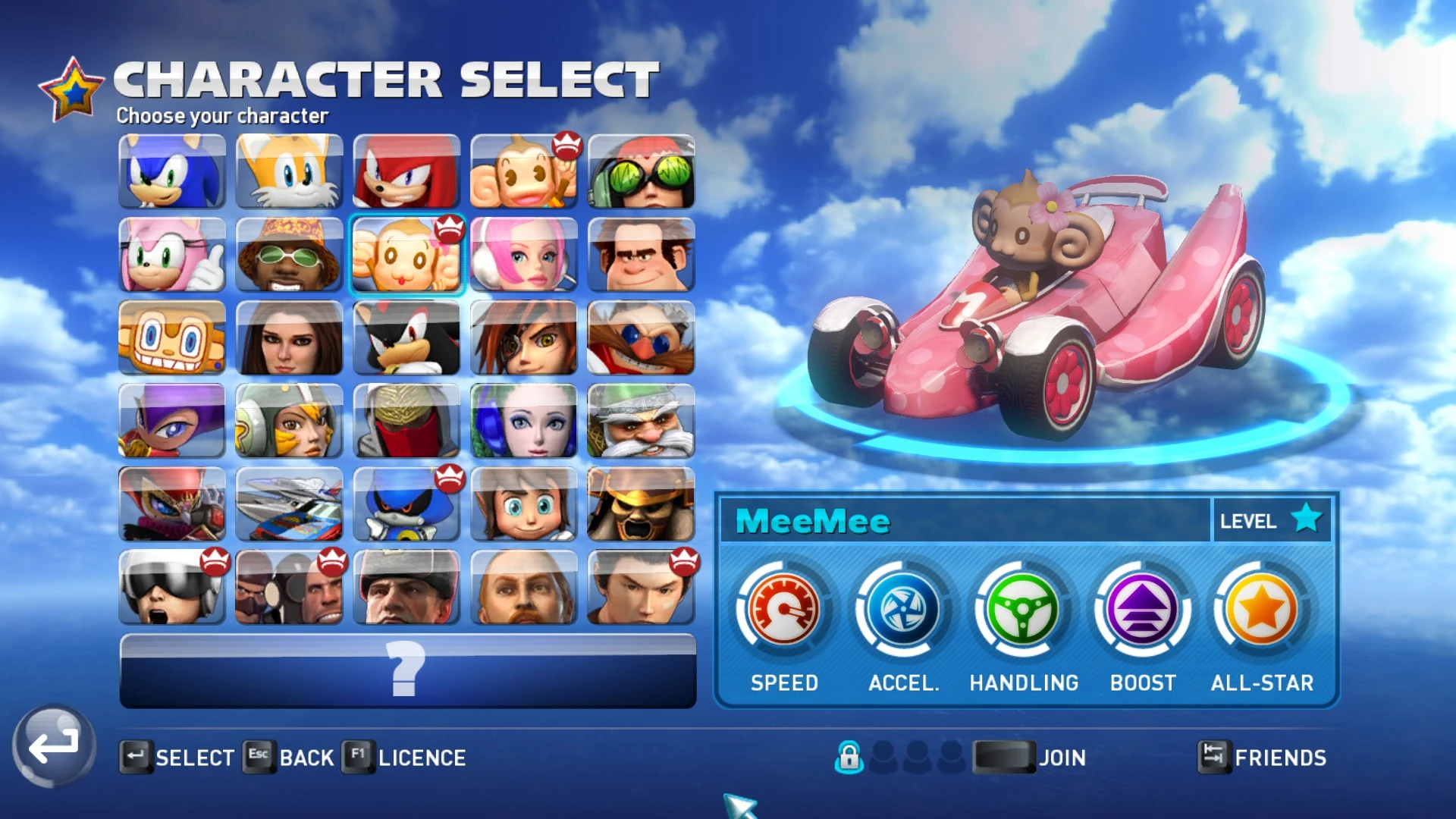 MeeMee in the character select menu in Transformed.
