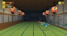 Ninja Stomp is a Party Game in Super Monkey Ball: Step & Roll. You must avoid hazards thrown at you and collect money.