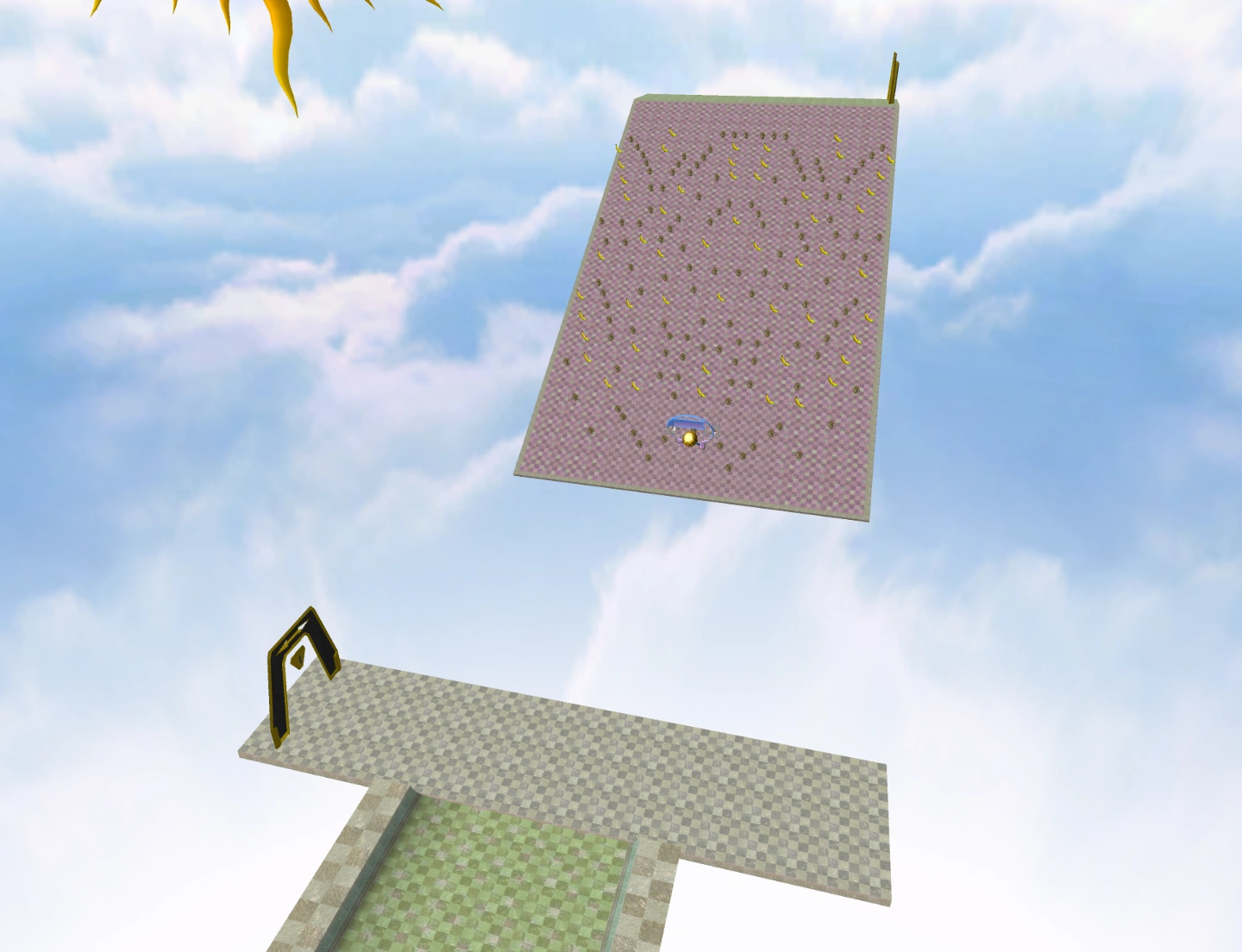 This stage is set up on a slope with bumpers and bananas on it. The goal is placed at the bottom of the slope. There are two wormholes that lead the player to the slope.