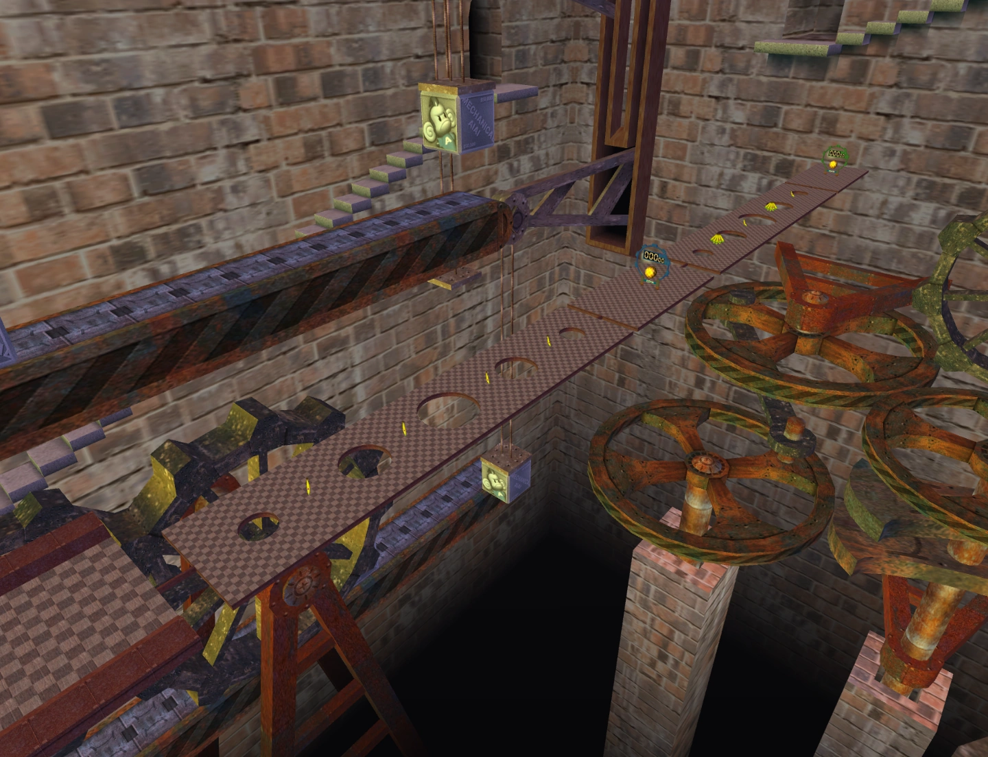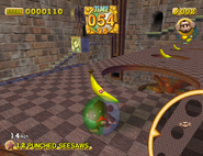 - In Banana Mania's Story Mode, the structure under the starting platform that the seesaws are connected to is no longer solid. It is still solid in the Challenge Mode version though.