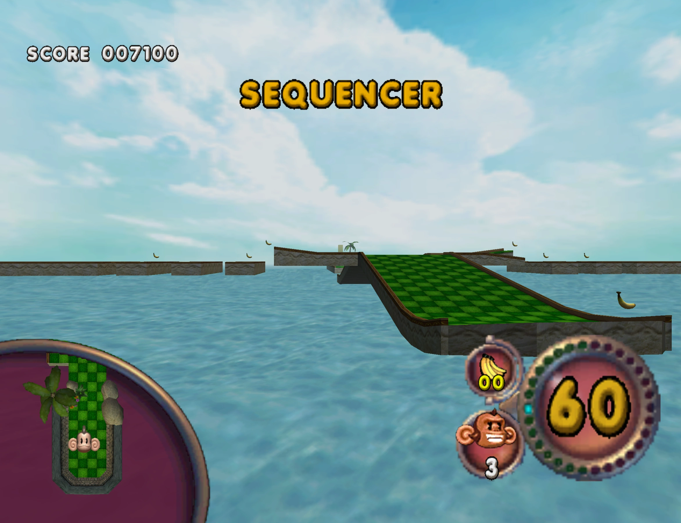 Sequencer is the 9th stage of Super Monkey Ball Adventure's Beginner mode. It also appears in its Story Mode on Distant Island alongside Tongue Twister, Celtic Knots, and Simple Split.