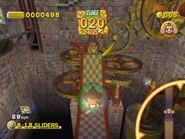 Sliders is the 25th Expert floor in Monkey Ball, Super Monkey Ball, and Super Monkey Ball Banana Mania, as well as the 44th Expert stage in Super Monkey Ball Deluxe and the 154th Ultimate stage with continues (194th without continues) and the 66th Marathon stage of Super Monkey Ball in Super Monkey Ball Banana Mania. In Super Monkey Ball Deluxe's Challenge Mode, it erroneously has its name swapped with Windy Slide.