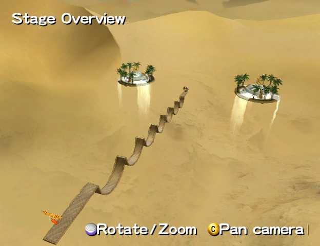 This floor is more straightforward than most Expert floors, but it is still considered hard. It features a set of seven semicircular platforms. These semicircular platforms are adjoined together in a linear pattern. The semicircular platforms are sloped downwardly, very slightly. There are bananas located where the semicircular platforms adjoin.