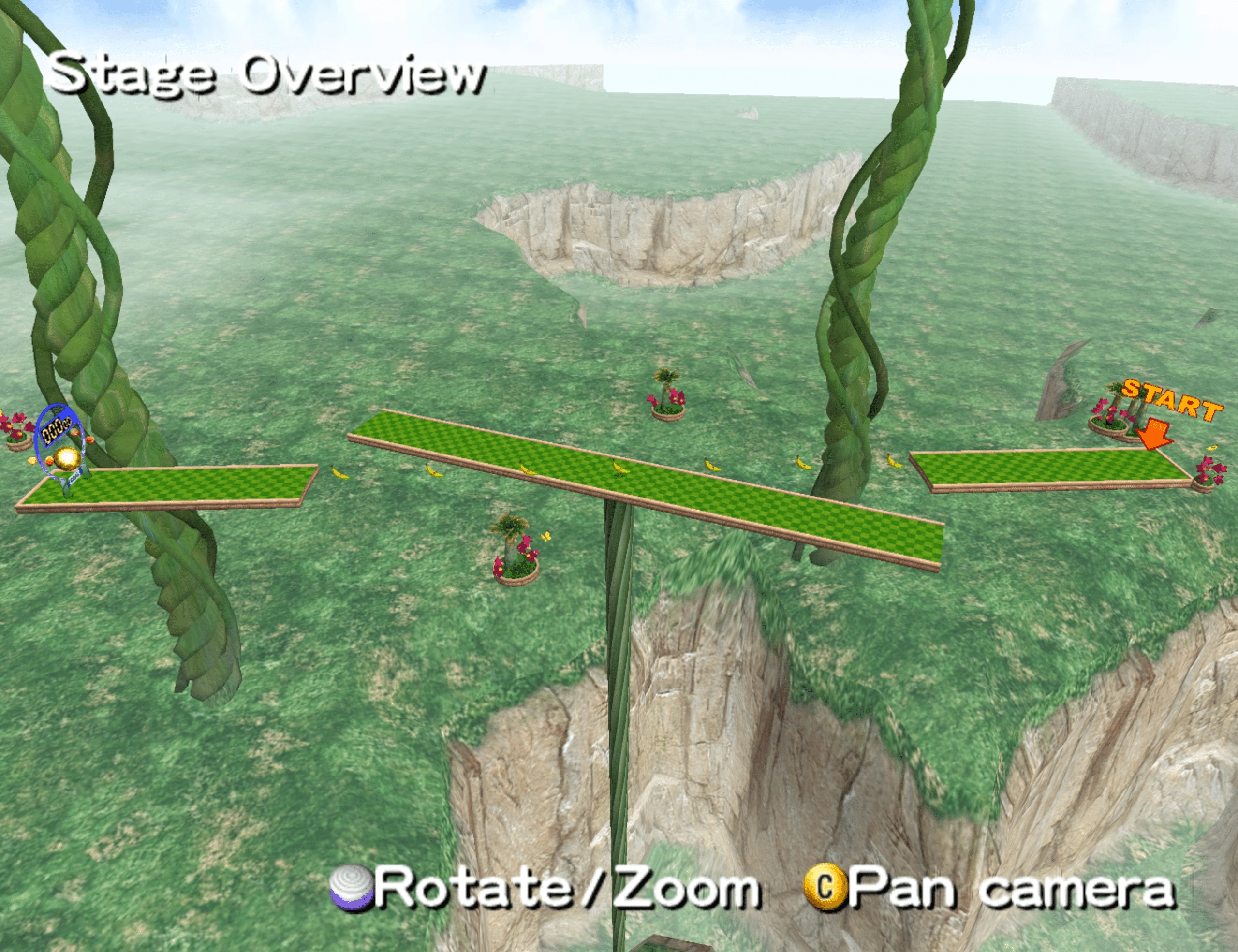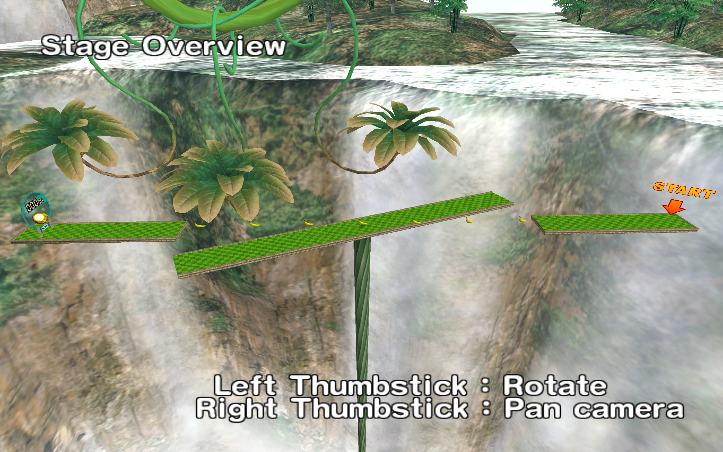 This stage is made up of two platforms with a bridge rotating between them. There is a row of bananas on the bridge.