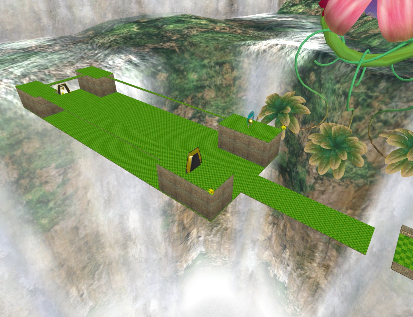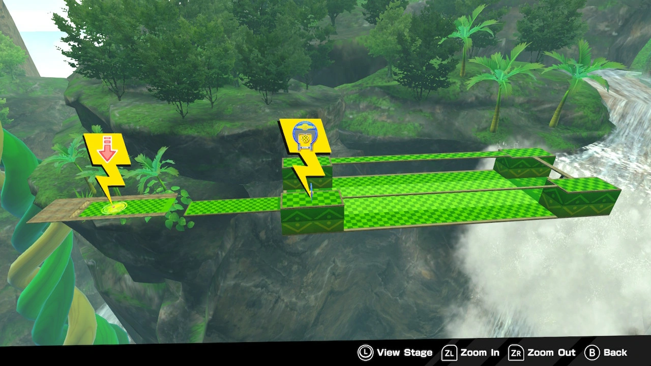 - With exact speed and movement, it is possible to bounce onto the platform with the goal by hitting a right-angled corner of the floor (often called 'clipping'). This is often used by speedrunners.
